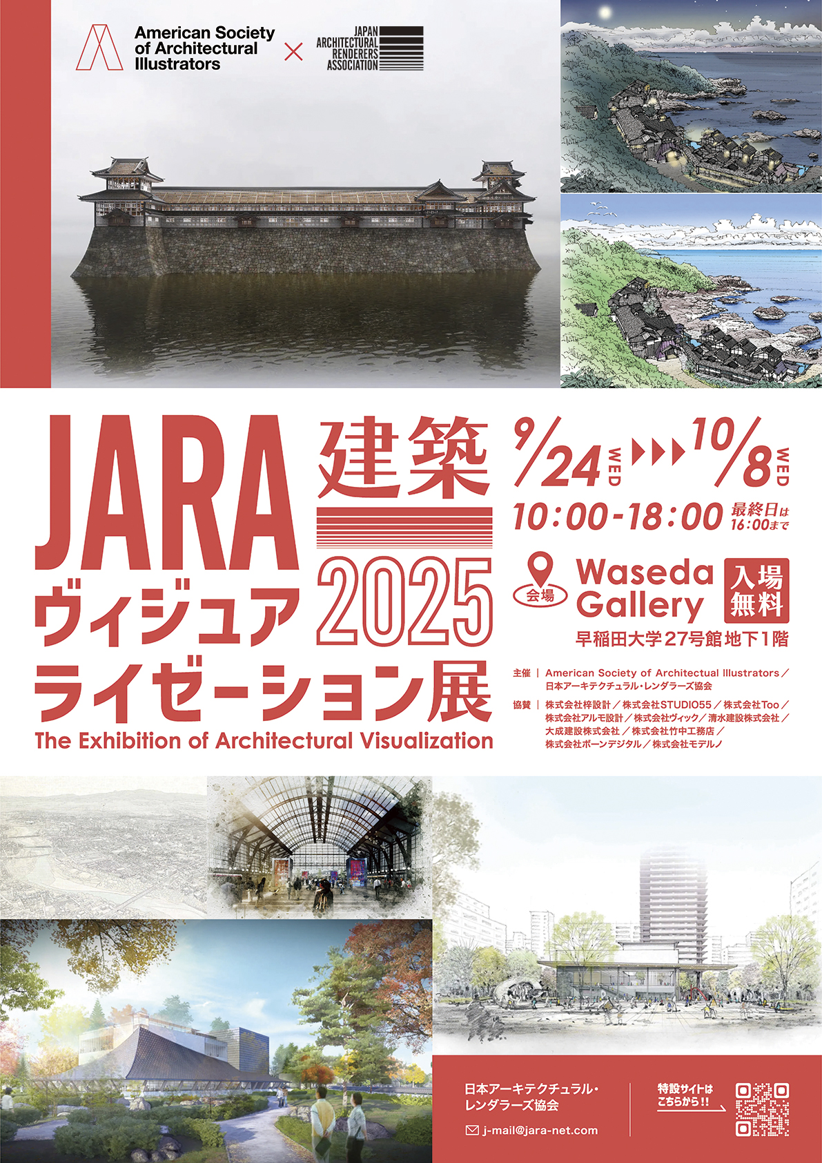 2025年のJARA建築ヴィジュアライゼーション展は、ASAI(Architectural Society of America International)との共同作品展『Architectural Visualization: Global Exchange ASAI39 & JARA2025』と共同で開催となりました。ぜひ会場に足を運んでいただき、多くの皆様にご高覧いただけますと幸いです。