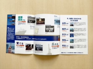 GRAPHICパンフレット制作 「社団法人日本港湾協会 港湾政策研究所」A4サイズの観音開きで、誌面展開が段々に広がる2段階の展開になるので表現方法の幅が広がるパンフレットになります。 GRAPHICパンフレットパンフレット制作「Evergreen school」書籍 「どんなときどう使う日本語表現文型500」関連記事一覧 2019_JARA展覧会に参加しました 書籍 「どんなときどう使う日本語表現文型500」 パンフレット制作「全国浚渫業協会」様 すぐわかるシリーズ「茶の湯の美術」「名品茶碗の見方」 「総合学習 調べてみよう 使ってみよう 自然エネルギー」(... 橋脚の見えない杭の基礎部分をCGで表現